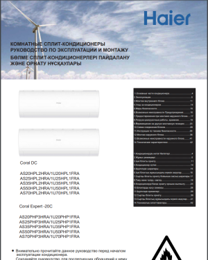 Документы и инструкция к кондиционеру Haier Coral DC Inverter AS20HPL2HRA/1U20HPL1FRA